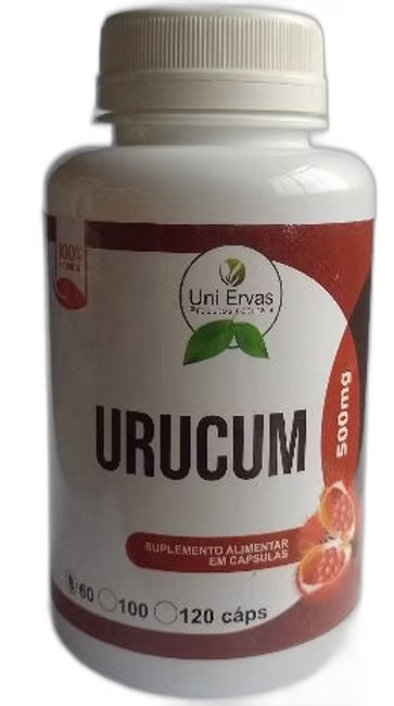 Nome científico: Bixa orellana Descrição: O Urucum é uma planta nativa da América do Sul, conhecida por seu alto teor de bixina e norbixina — carotenoides naturais com potente ação antioxidante. Tradicionalmente usado por suas propriedades protetoras da pele, é também um aliado natural para a saúde dos olhos e do sistema imunológico. Benefícios: ✅ Rico em antioxidantes naturais (bixina e norbixina) ✅ Auxilia na proteção da pele contra raios UV ✅ Suporte à saúde ocular ✅ Fortalece o sistema imunológico ✅ Contribui para a prevenção do envelhecimento precoce Posologia: Ingerir 2 cápsulas ao dia, preferencialmente com as refeições, ou conforme orientação de um profissional de saúde. Ingredientes: • Urucum em pó (semente de Bixa orellana) • Cápsula vegetal (hipromelose e água purificada)