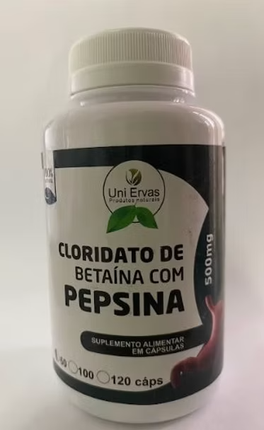 A Betaína com Pepsina 500 mg é uma combinação destinada a melhorar a digestão, especialmente em pessoas com baixa produção de ácido clorídrico no estômago. A betaína HCl auxilia na acidificação adequada do suco gástrico, favorecendo a quebra de proteínas, a absorção de minerais como ferro, cálcio, zinco e magnésio, e reduzindo sintomas como inchaço, gases, refluxo leve, arrotos constantes e sensação de peso após as refeições. A pepsina, enzima digestiva fundamental, potencializa a digestão proteica e otimiza o funcionamento gástrico. Juntos, esses componentes ajudam a prevenir disbiose, melhorar a assimilação de nutrientes e apoiar o equilíbrio intestinal. A suplementação pode ser útil em quadros de hipocloridria, gastrite atrófica leve, má absorção, anemia por baixa absorção de ferro, cansaço pós-refeição e distúrbios digestivos recorrentes. Também contribui para o desempenho metabólico e o fortalecimento geral do sistema digestório.
