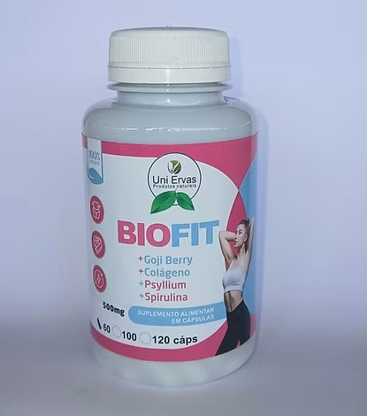 Biofit é um suplemento natural composto por goji berry, colágeno, psyllium e spirulina, que juntos promovem saúde, beleza e bem-estar. O goji berry é rico em antioxidantes, ajudando a combater os radicais livres e fortalecer o sistema imunológico. O colágeno contribui para a firmeza da pele, fortalecimento de unhas e cabelos, além de auxiliar na saúde das articulações. O psyllium é uma fibra natural que melhora o trânsito intestinal, promove saciedade e ajuda no controle do colesterol. Já a spirulina é uma alga rica em proteínas, vitaminas e minerais, que favorece o aumento da energia, desintoxicação do organismo e apoio ao emagrecimento saudável. Biofit é ideal para quem busca um estilo de vida equilibrado, aliando nutrição, controle de peso e cuidados com a estética de forma natural e eficaz.