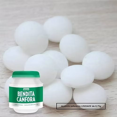 • A cânfora possui propriedades analgésicas, ajudando no alívio de dores musculares e articulares • Pode auxiliar na descongestão das vias respiratórias, aliviando a tosse e facilitando a respiração • Tem efeito refrescante, proporcionando sensação de alívio em casos de resfriados e gripes • Atuação antisséptica, auxiliando no combate a infecções leves e irritações na pele • Promove o alívio de dores de cabeça, com seu efeito calmante Valor Terapêutico A cânfora tem longa tradição na medicina natural, sendo utilizada para aliviar dores musculares, descongestionar as vias respiratórias e promover sensação de bem-estar.