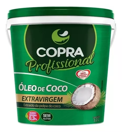 Balde Óleo Coco Extra Virgem Copra Vidro Sem Glúten 3,2l